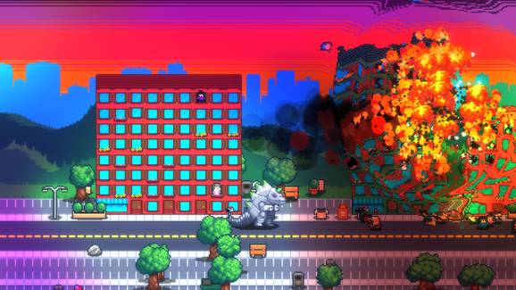 Embark on a rampaging trail of total devastation across multiple stages as one of four recently defrosted monsters. Roar with delight as you stomp terrified citizens and pulverise buildings in an apocalyptic, retro arcade blast of awesome monsters, satisfying destruction, and farcical fatalities!