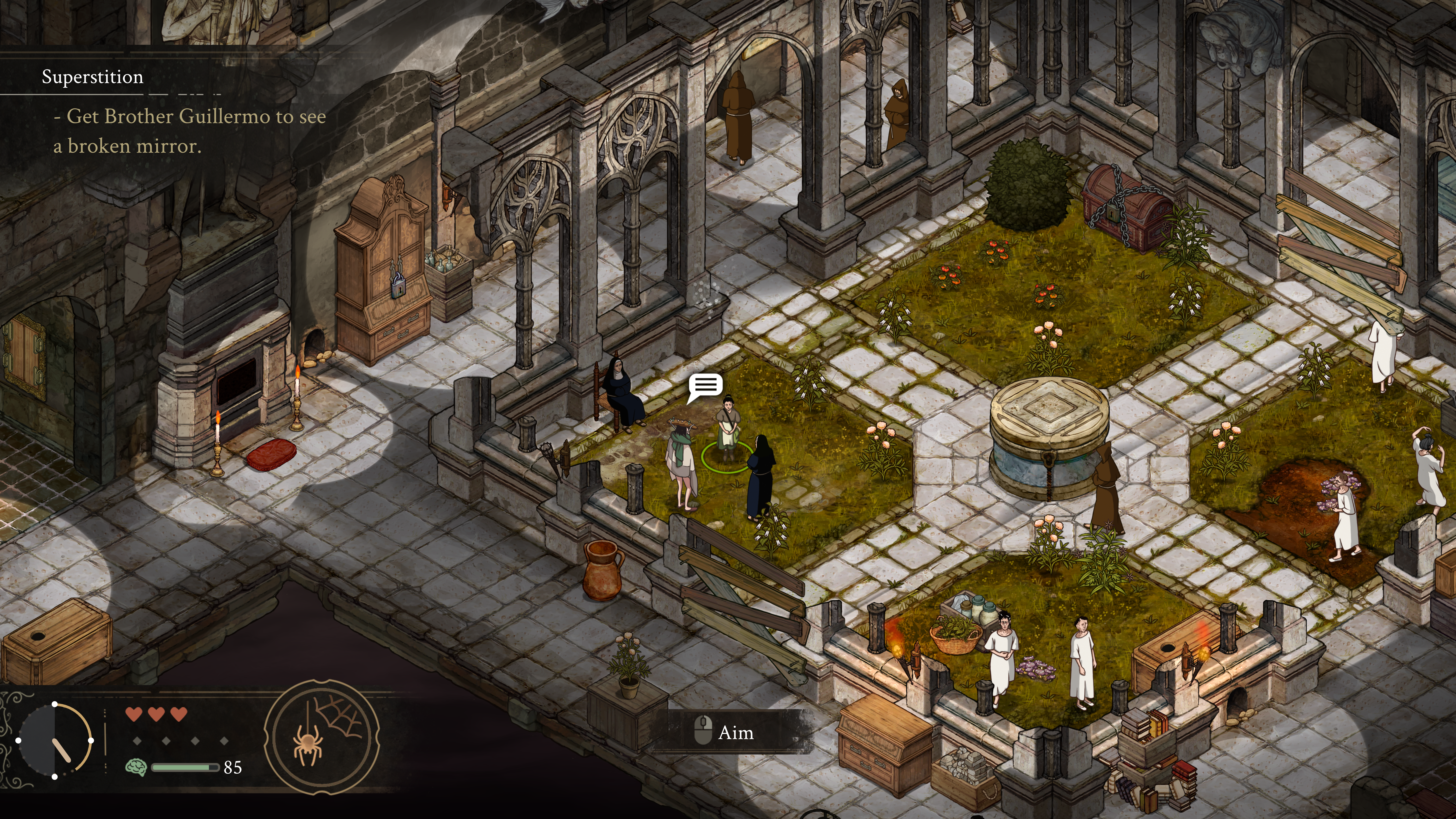 The Stone of Madness is a real-time tactical stealth game set in an 18th-century Spanish Monastery. Located in the Pyrenees, this time-worn Jesuit monastery is home to a madhouse and an inquisitorial prison. Five prisoners - plagued by cruel punishment, madness, and despair - pool their skills and resources to face their phobias, stave off insanity, uncover the mysteries of the Monastery, and find a way to escape.