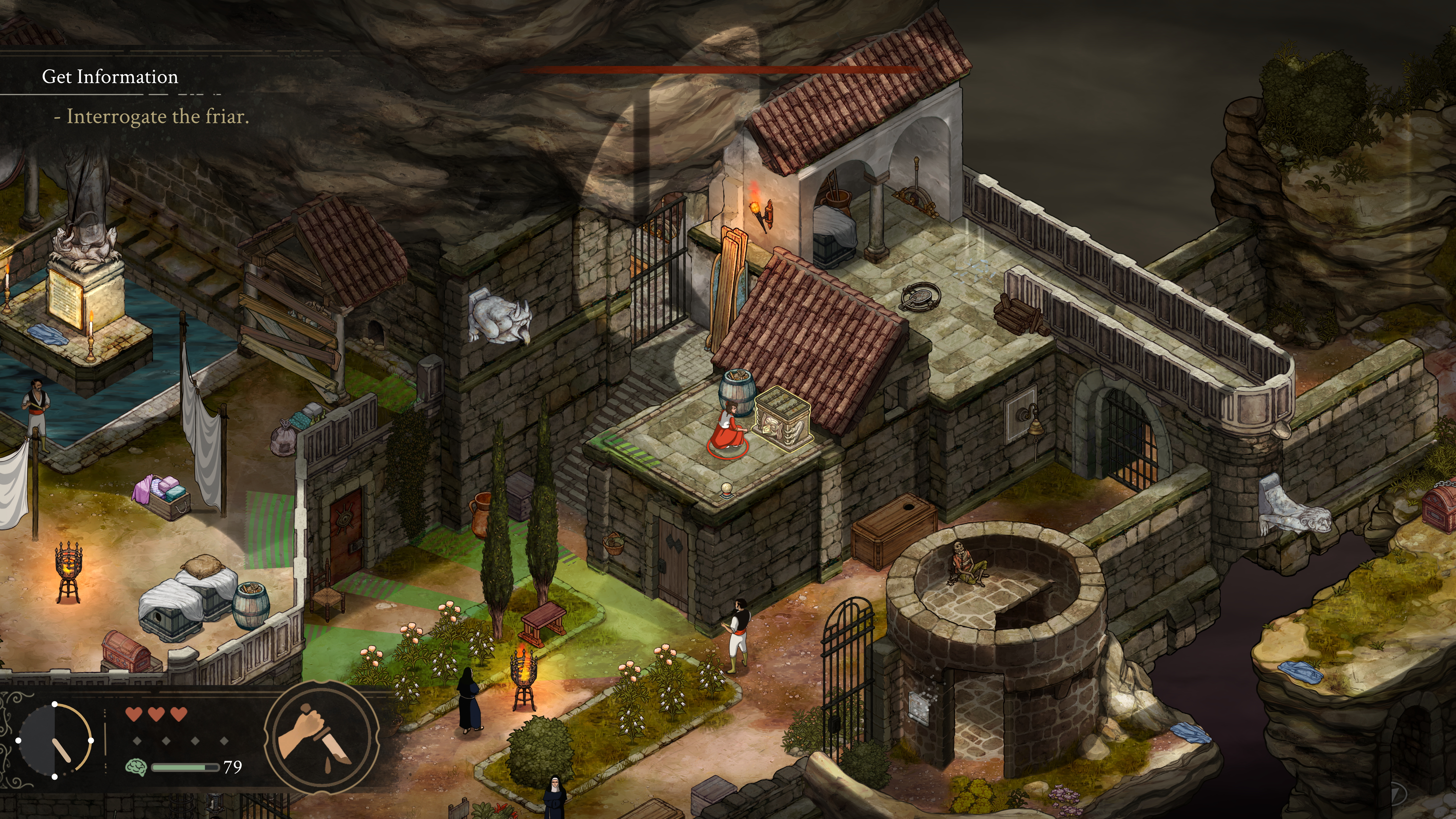 Explore your surroundings and combine the characters’ abilities to find clues and tools scattered throughout the monastery. Be careful though, if you’re caught being somewhere you shouldn’t be, the guards will not be kind.