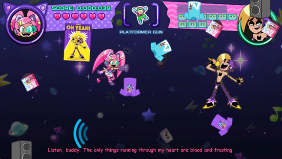 Combining classic 2D shoot-'em-up gameplay and a hilarious story with weapons inspired by game genres such as puzzle, sports, platformer, rhythm, and RPG, this bombastic side-scrolling experience pushes the absurdity meter to its limits and beyond! Prepare for an action-shooter unlike anything you’ve ever played before...just watch out for salad!