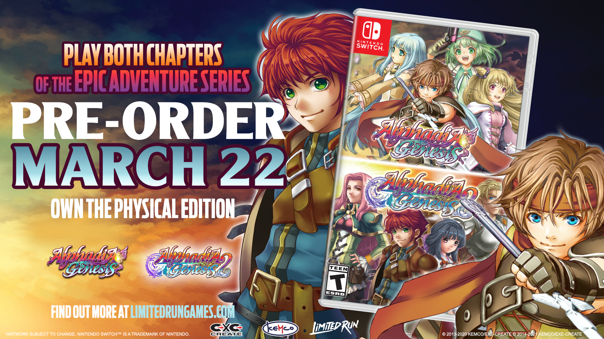 Alphadia Genesis 1 & 2 is on a region-free physical cart for the Nintendo Switch. This is an open pre-order for a limited time.