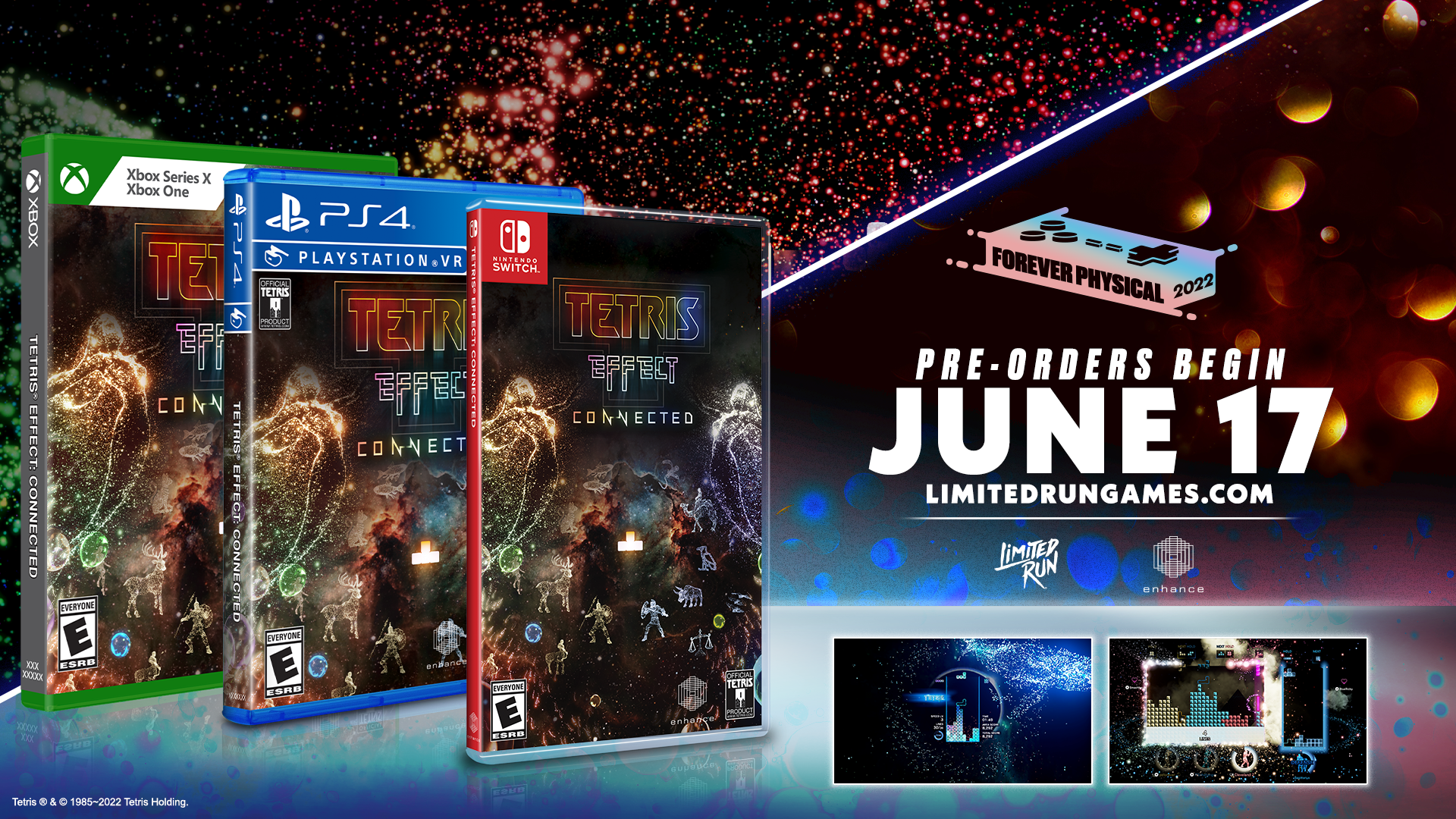 Tetris® Effect: Connected is on a region-free physical cart for the Nintendo Switch. This is an open pre-order for a limited time.