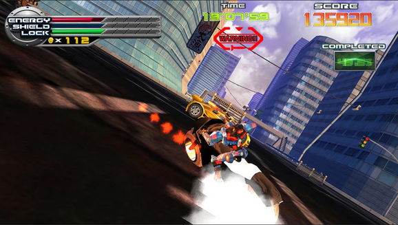 In the year 2102 C.E. a massive, previously unknown asteroid entered Earth’s orbit and began unleashing waves of attacks on the planet, killing thousands of people every day and devastating human civilization. The lucky few who survived the initial onslaught managed to escape deep underground, narrowly preventing humanity’s extinction. The Governing Council ordered an immediate counter-attack using three experimental robots: Calista, Sophia, and Dynamis. With that, Operation ExZeus was born. Now, you must choose one of the three giant flying robots to take into battle against the invading forces of Diadora. Soar through the skies, blast away enemies, and reclaim Earth for its people!