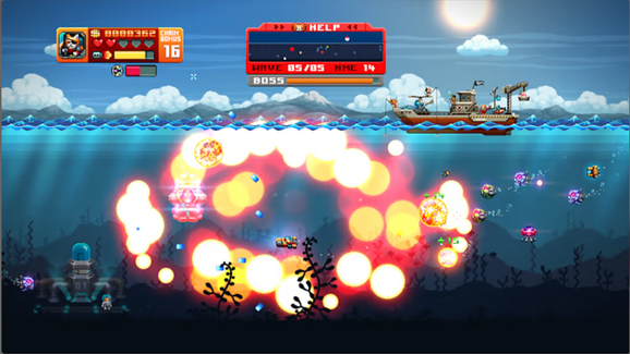 Get ready for fast paced submarine action, defending the kittens from disruptive mechanical sea creatures.
