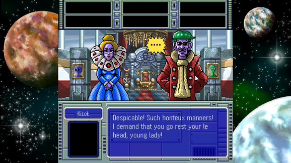 Follow the adventures of Thunder and Kyla on their spaceship, Omega 6: two androids entrusted with discovering a new planet for the human race to inhabit. But before they find mankind's new home, they must locate the ultimate treasure in some ancient ruins to pay off... a planetary loan?! Their quest will take them to three different planets, the first planet is Impostar, a planet filled with aliens from all four corners of space. The second planet is Igni, a fiery planet with a harsh environment. The third planet is Froslara, a planet as frozen as its residents are rich.