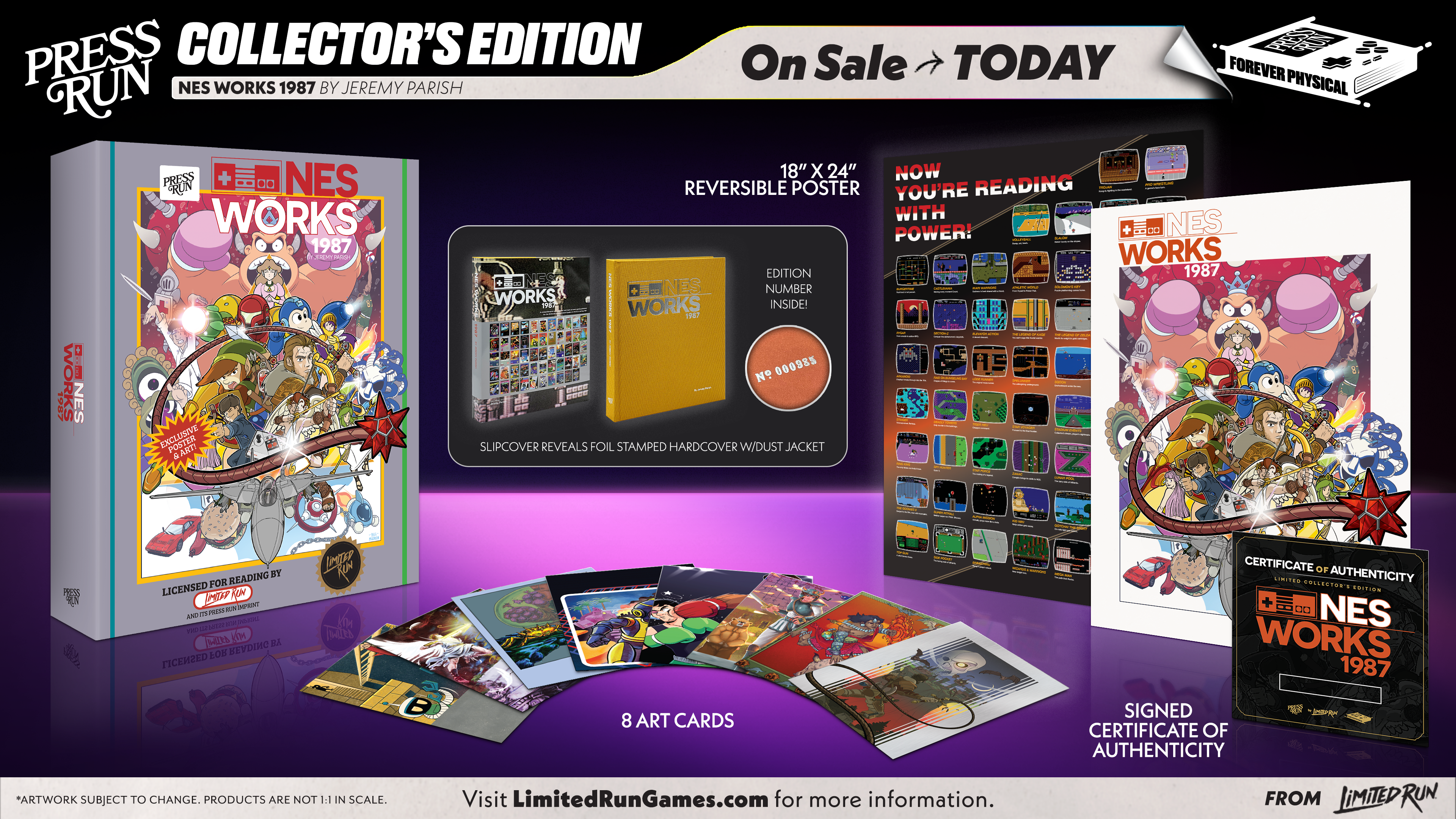 - A special printing of NES Works 1987 with the edition number (of 1000) stamped on the inside hardcover;