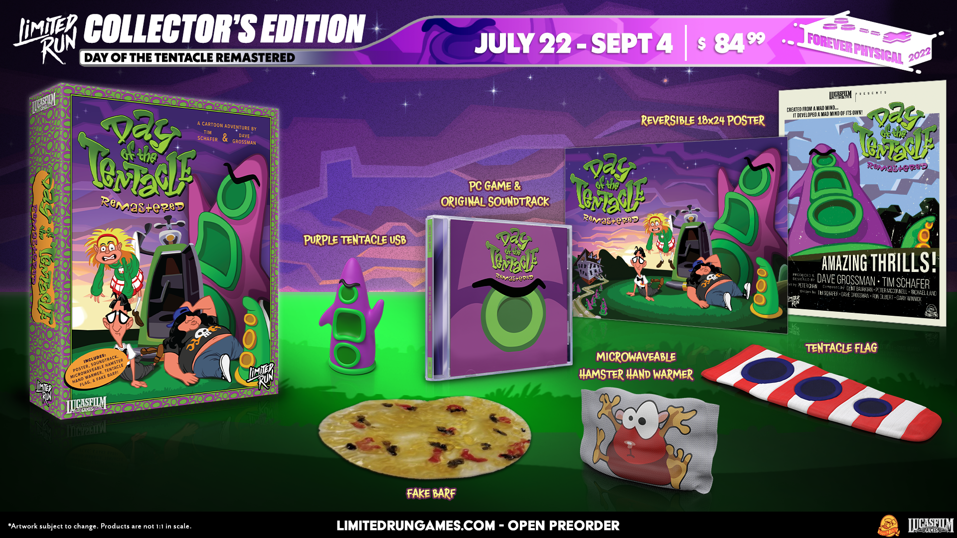 Day of the Tentacle Remastered is on a region-free physical disk for the PC. This is an open pre-order for a limited time.