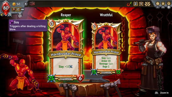 To take back hell, you’ll need to power up. Choose your route carefully, different locations yield different benefits. Upgrade your champion, gain Pact Shards and their benefits, recruit powerful units, upgrade cards, gain passive bonuses, or duplicate any card in your deck.