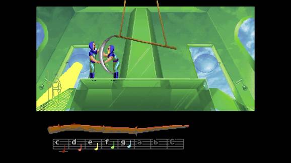 Another such Guild was the Weavers. Over the centuries, their craft transcended the limits of physical cloth, until they wove the very fabric of reality itself. Now, a strange power has swept the Weavers into oblivion, leaving behind one Weaver boy to unravel the mystery. Help young Bobbin rescue his Guild...and you just might save the universe from an unspeakable catastrophe.