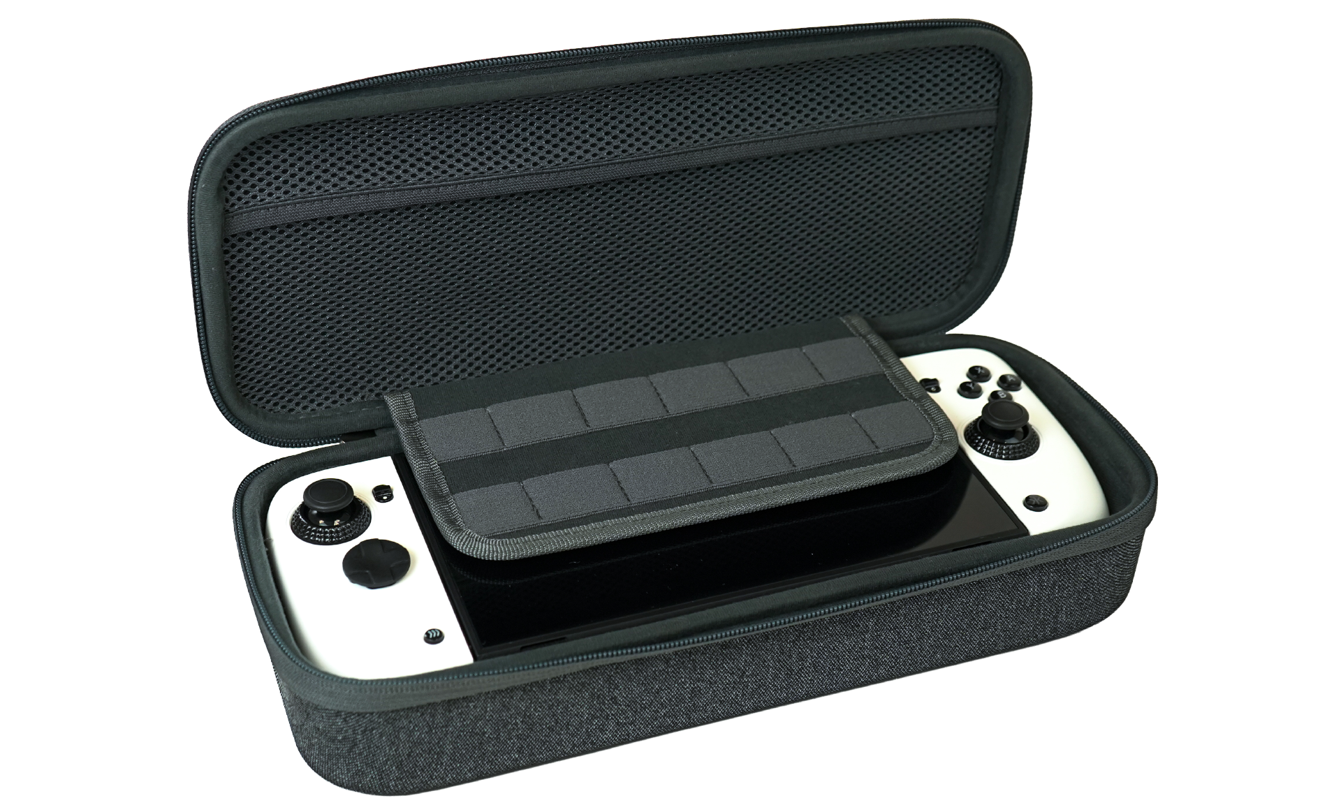 Protect your deck and console wherever you go with the Nitro Deck 2 Hardshell Carry Case. Built for travel and everyday use, this case keeps your Nitro Deck 2 secure with a durable outer shell and protective interior. Inside, dedicated storage keeps everything organized, including a game cartridge holder, Joy-Con™ storage, and extra space for your essential accessories.