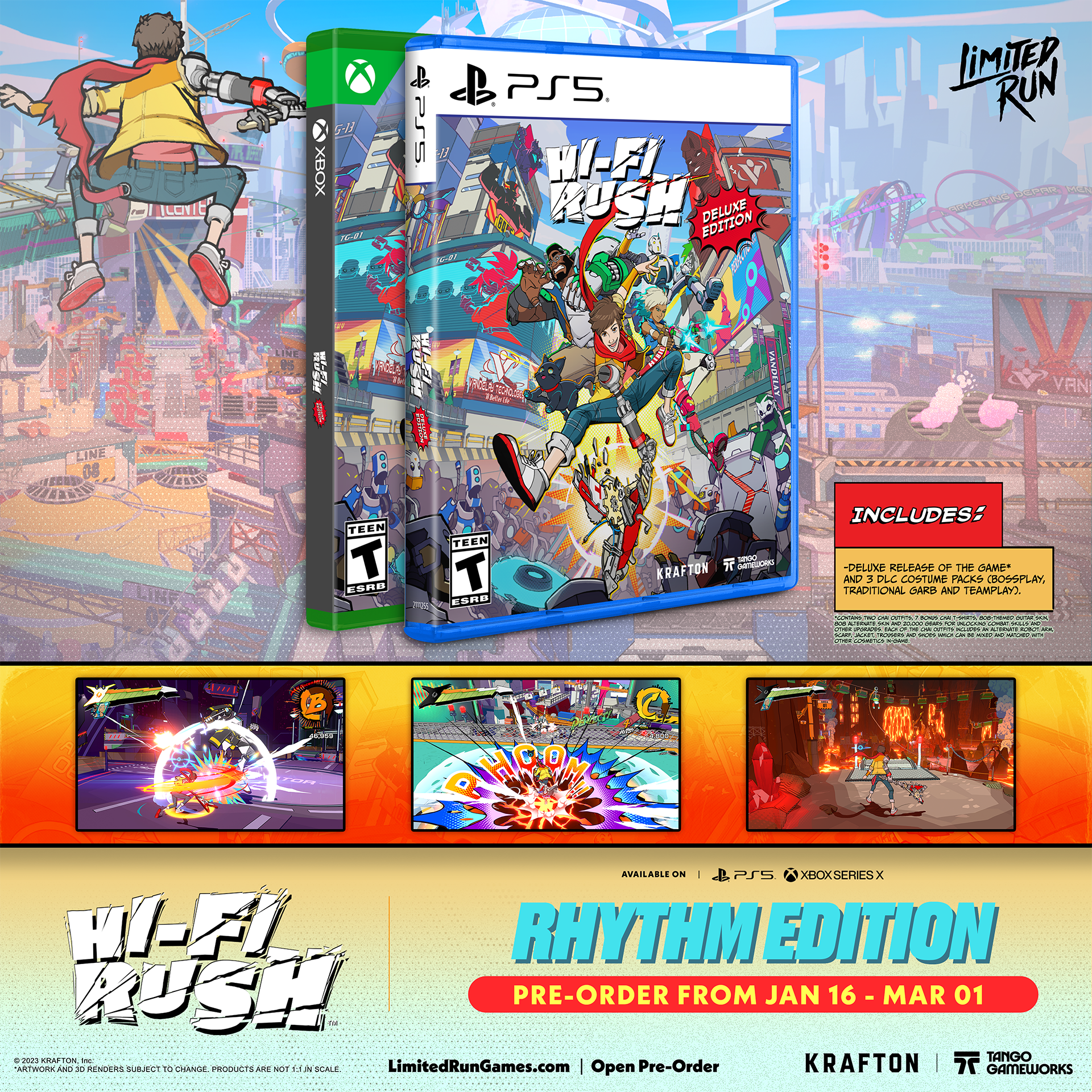 Rebel against an evil tech megacorp as wannabe rockstar Chai and his ragtag crew using the power of raucus rhythm combat! From Tango Gameworks, the critically acclaimed studio that brought you The Evil Within and Ghostwire: Tokyo (no, really) and featured in 50+ "Best of 2023" lists by critics, HI-FI RUSH brings high-energy action where the characters, world and even combat stylishly sync to the music.