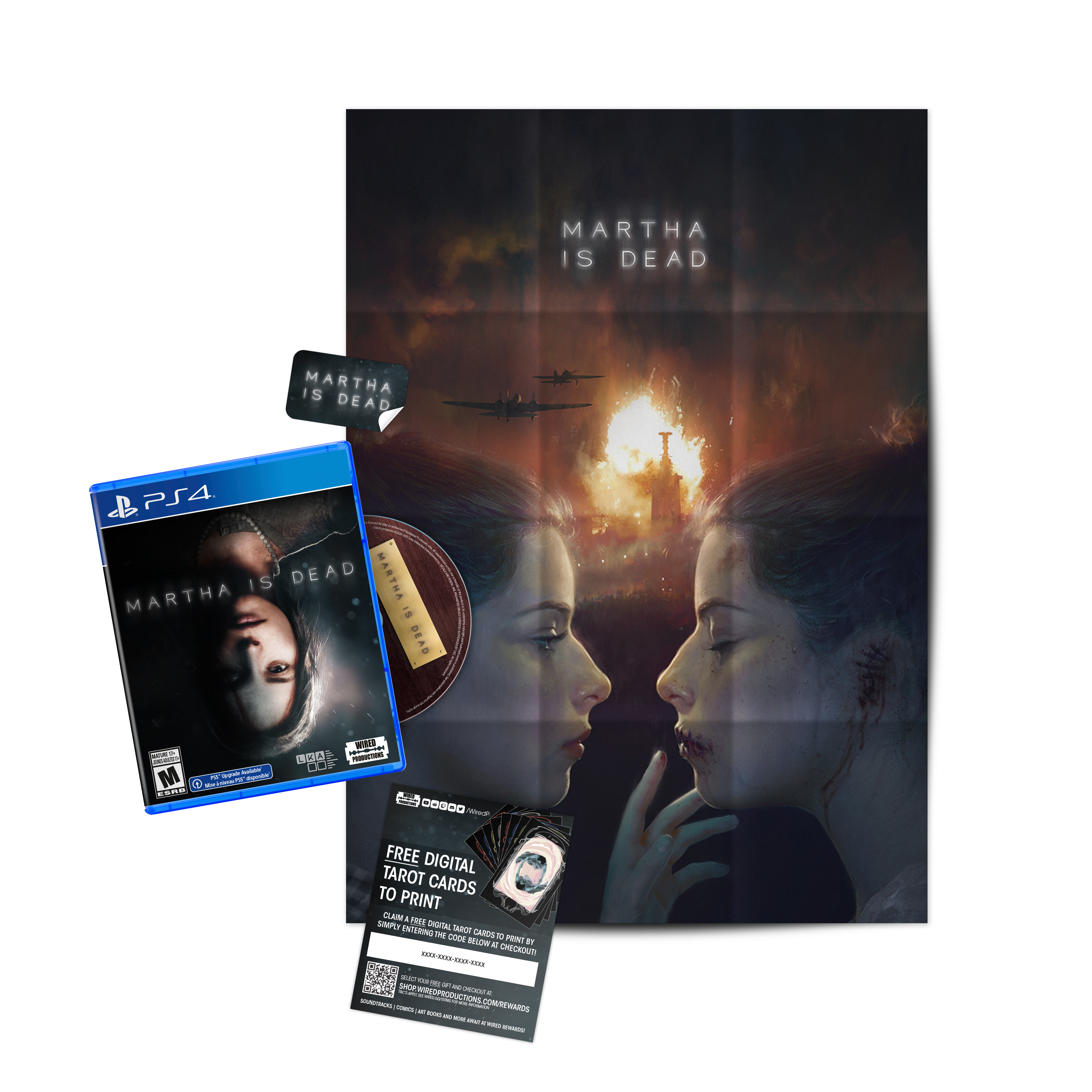 The Martha Is Dead boxed edition includes an exclusive reversible inlay and fold out double-sided A3 poster, along with a collectible sticker set and a digital download tarot card pack, based on the cards in-game.