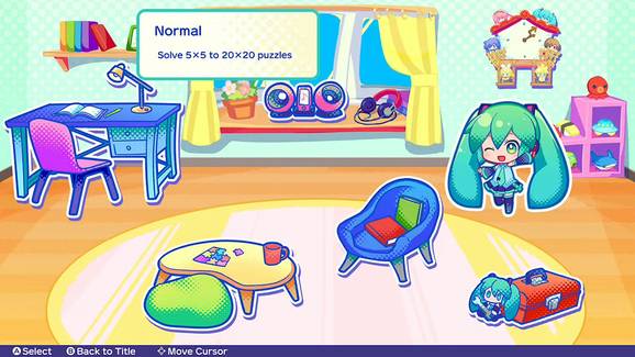 Enjoy puzzles together with your favorite Piapro Characters in Miku and friends' room!